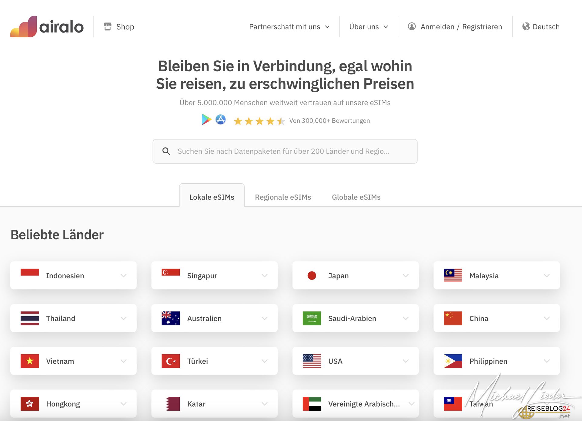 Du kannst SIM-Karten auch online bei den Websites der Mobilfunkanbieter kaufen. Das kann man sogar in der Regel vorbereiten, bevor man die Reise startet. Besonders wenn man ein Smartphone mit eSIM Funktion hat, ist diese Option zwar nicht die billigste, aber man hat vom Start weg sofort eine Verbindung.