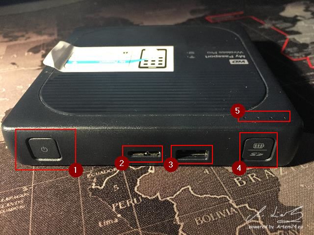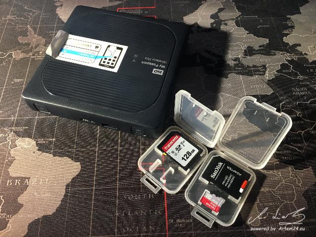 Dafür habe ich mir einen Wegbegleiter von Western Digital ausgesucht, die WD My Passport Wireless Pro mit 3 TB Speicherplatz. Diese kleine 12 × 12 cm große 2,5 Zoll (6,35 cm) externe Festplatte gibt es in zwei oder drei Terabyte Größe und seit Neuestem auch als SSD.