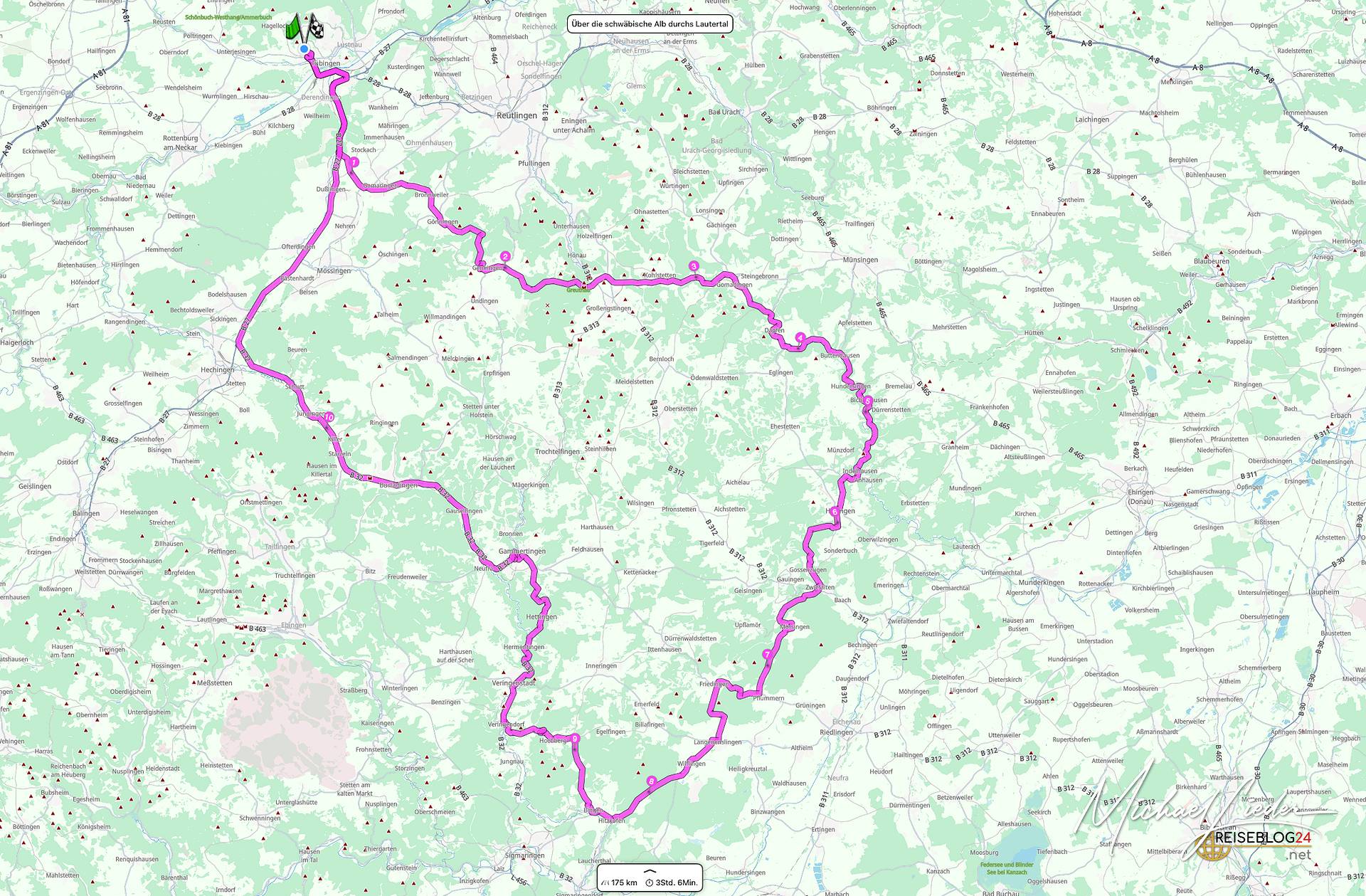 Das Lautertal hat sich dabei kaum verändert: noch immer schlängelt sich die Straße elegant zwischen Felsen, Wiesen und Wäldern hindurch. Burgen grüßen von oben herab – manchmal charmant, manchmal wie eine mittelalterliche Radarfalle – und wer mag, kann einen kleinen Abstecher zur Wimsener Höhle machen. Ja, genau die Höhle, bei der man zuerst denkt: „Ach, das ist doch nur ein Loch im Fels“ – und dann plötzlich in einem Boot sitzt, unter Tropfsteinen hindurchgleitet und sich fragt, ob man noch im Lautertal oder schon in Tolkiens Moria gelandet ist.