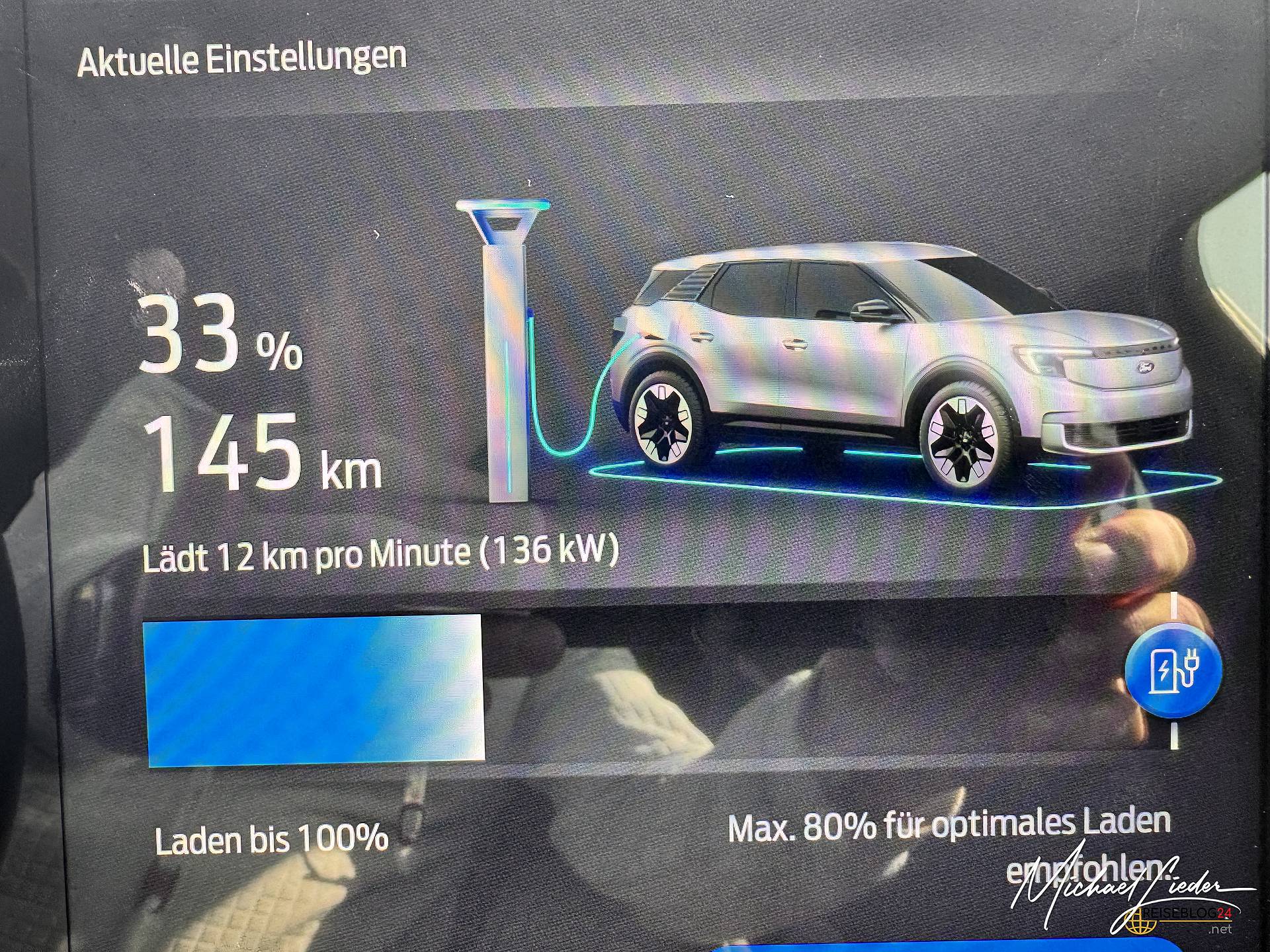 Was mich sofort verblüfft hat: die Reichweite. Mein alter Hyundai Kona (64 kWh Akku) war so ein klassischer „Lade-Pausen-Junkie“ – drei Stopps zwischen Berlin und Schwabenland waren Standard. Der Explorer dagegen? Zwei Stopps, fertig. Und das, obwohl ich immer plane, mit einem Restakku von 30–40 % anzukommen, damit ich zu Hause nicht gleich wieder an die Strippe muss.