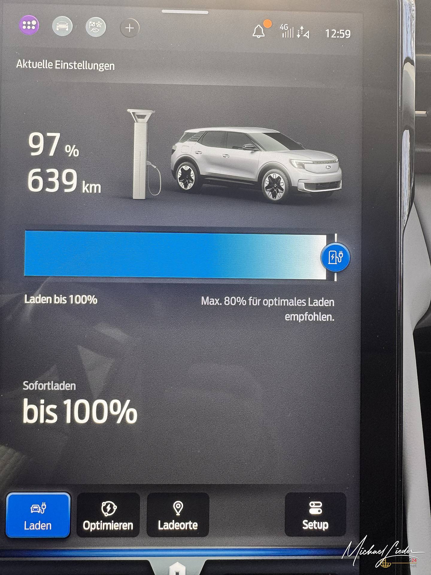 Was mich sofort beeindruckt hat, war die Reichweite. Wenn ich Freunde in Berlin mit meinem bisherigen Hyundai Kona (64 kWh Akku) besucht habe, musste ich grundsätzlich drei Ladepausen einplanen. Der Ford Explorer hingegen kam mit nur zwei Stopps aus – ein spürbarer Unterschied! Dabei rechne ich stets so, dass ich zu Hause noch mindestens 30–40 % Restakku habe, um nicht sofort wieder laden zu müssen. Dieser Punkt geht also ganz klar an den Ford Explorer.