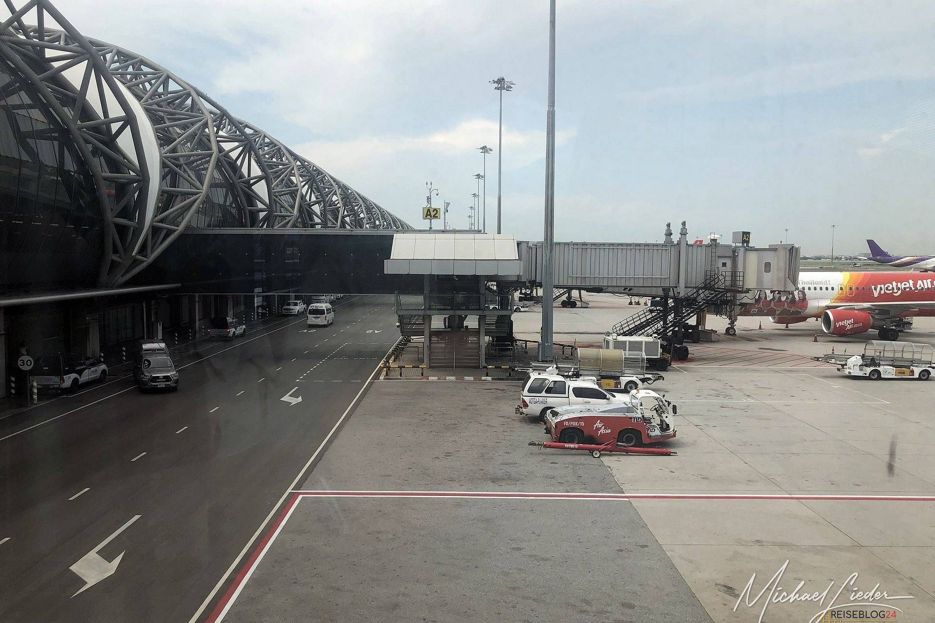 Bangkok begrüßt mich nicht mit einem sanften Händedruck, sondern mit einem architektonischen Schulterklopfer. Der Flughafen ist kein Ort, er ist ein Statement. Stahl, Glas, Klimaanlage und Distanzen, die man sonst nur von Mittelgebirgswanderungen kennt. „1400 Meter bis zur Gepäckausgabe“ steht da. Kein Scherz, kein Laufbandwitz. Einfach gehen. Und während draußen die Hitze versucht, einen weichzukochen, gleitet man hier durch eine perfekt temperierte Stahlkonstruktion, als hätte jemand beschlossen, Chaos und Effizienz einmal ernsthaft zu verkuppeln.